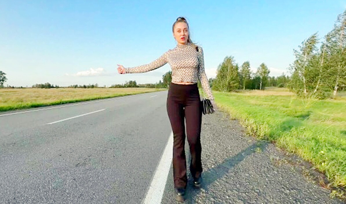 Młoda para podróżuje autostopem i chętnie rucha się w miejscach publicznych