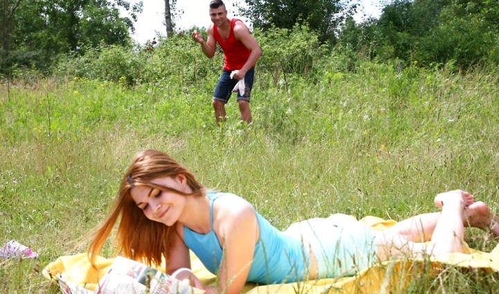 Brunetka spała na wolności z leśniczym z dużym penisem