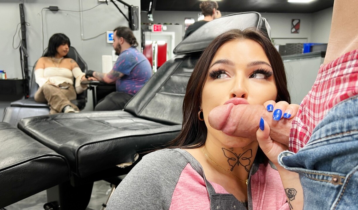 От скуки блондинка идет на тату шопинг и получает там удовлетворение...